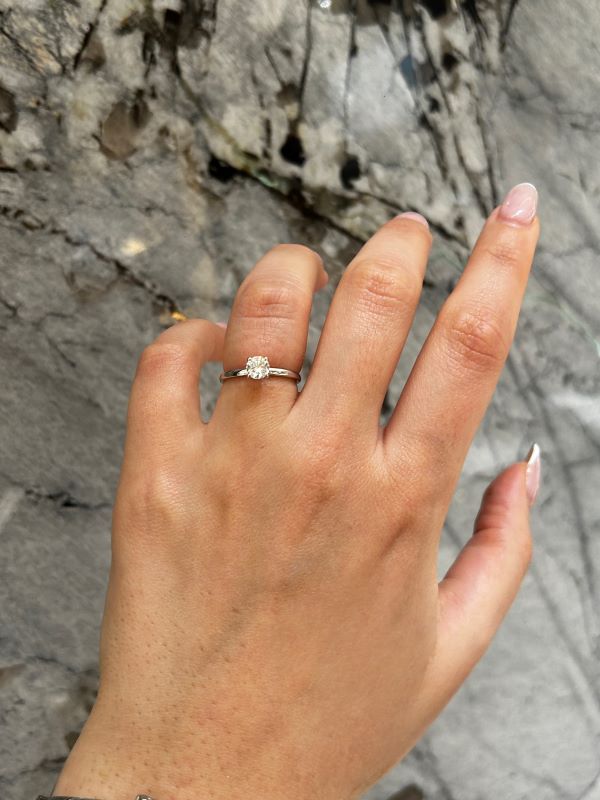 Ladies' solitaire engagement ring in size 6.5, please email contact@lugaro.com for sizing inquiries.