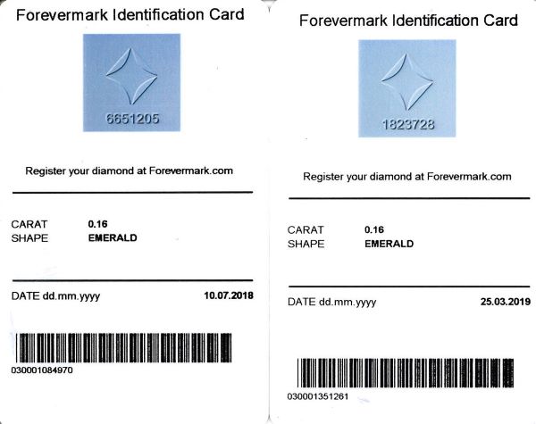 Engagement ring includes a GIA diamond certificate and 2 De Beers diamond certificates.
