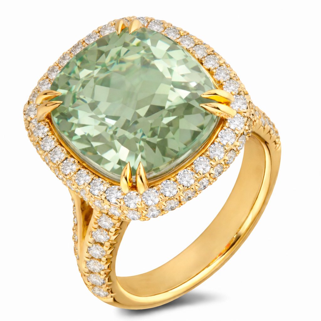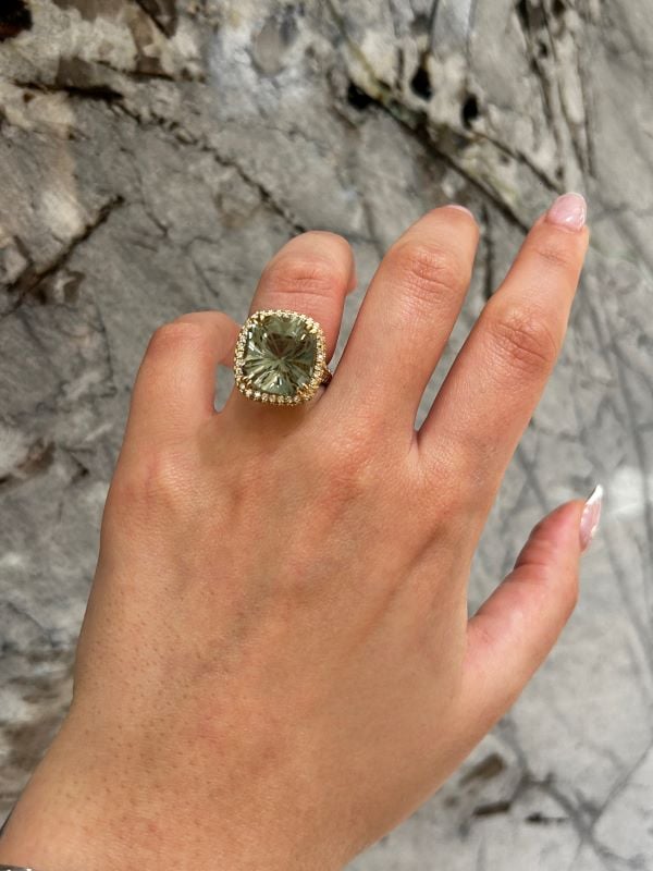 Be the first to review “Green Amethyst and 2.06 CTW Diamond Halo Cocktail Ring in 14K Yellow Gold”