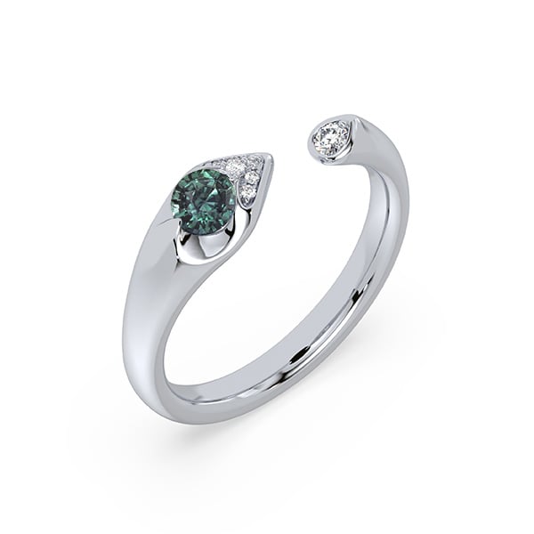 Green Sapphire and Canadian Diamond Enchanted Open Ring in White Gold