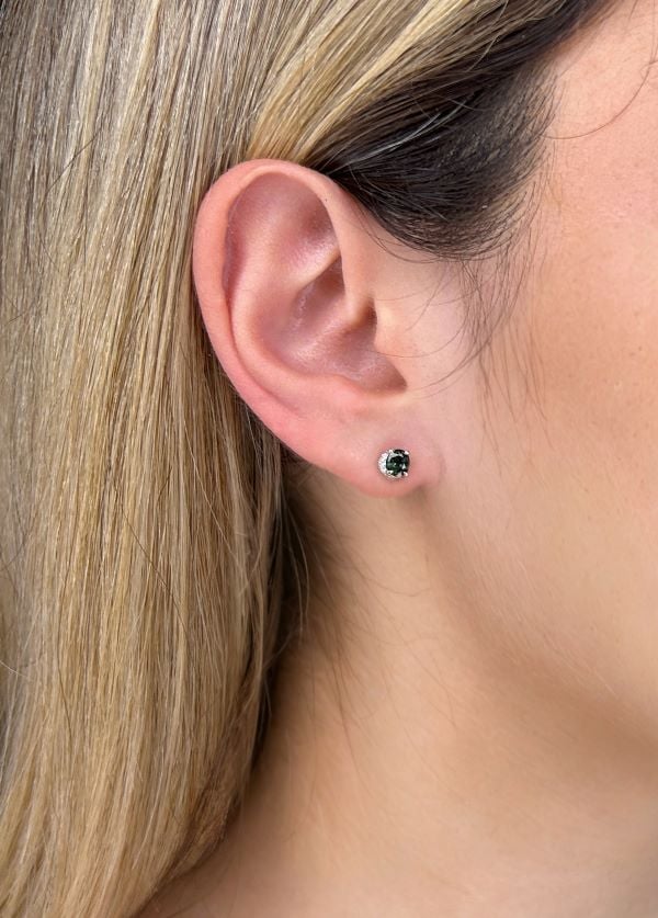 Be the first to review “Green Sapphire and Canadian Diamond Half Halo Stud Earrings in Yellow Gold”