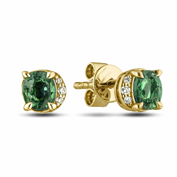 Green Sapphire and Canadian Diamond Half Halo Stud Earrings in Yellow Gold