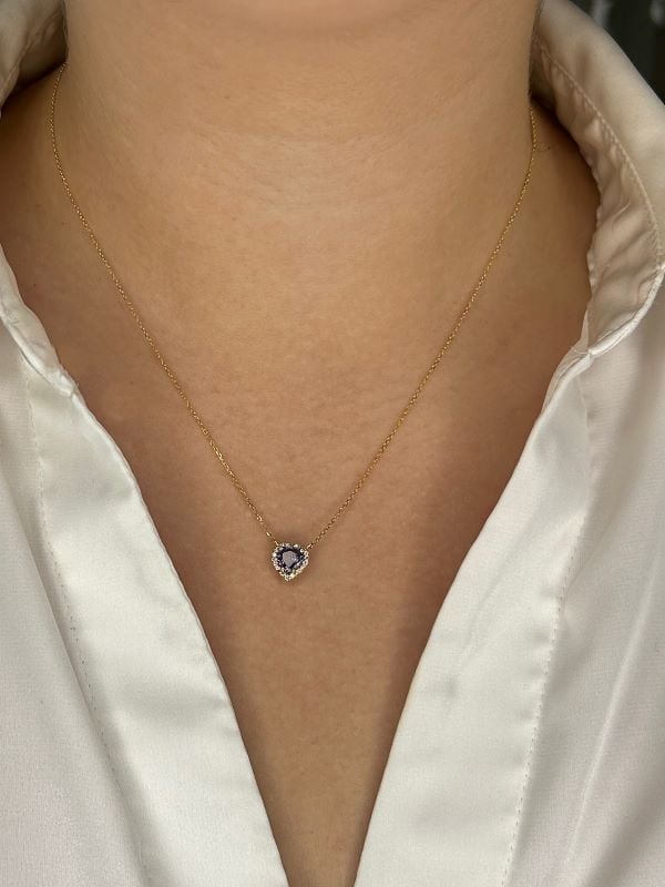 Be the first to review “Heart Shaped Amethyst and Canadian Diamond Necklace In Yellow Gold”