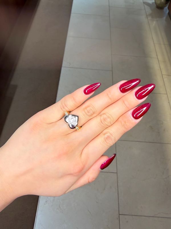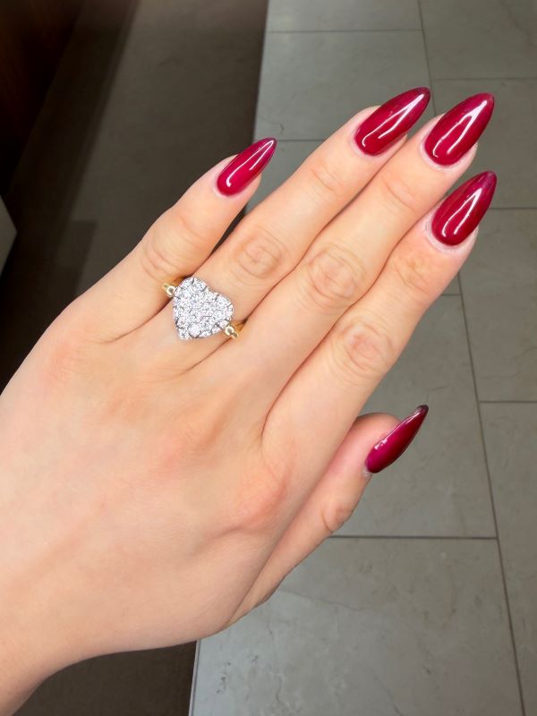 Be the first to review “Heart Shaped Honeycomb Reversible Diamond Ring In 18K White and Yellow Gold”