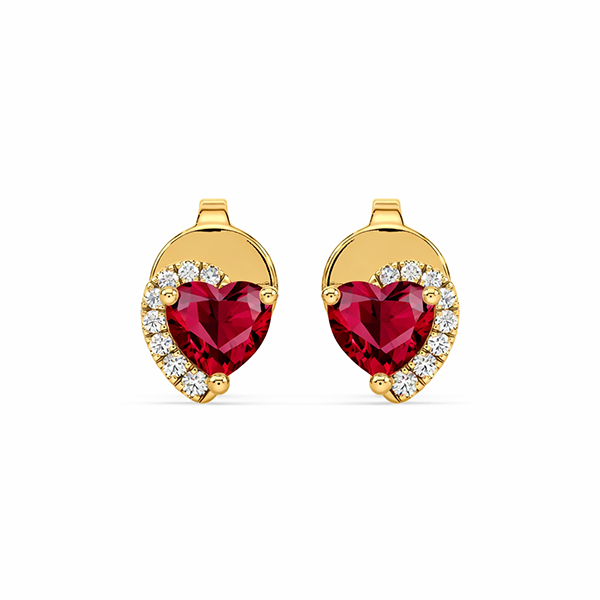 Be the first to review “Heart Shaped Ruby and Canadian Diamond Half Halo Stud Earrings in 14K Yellow Gold”