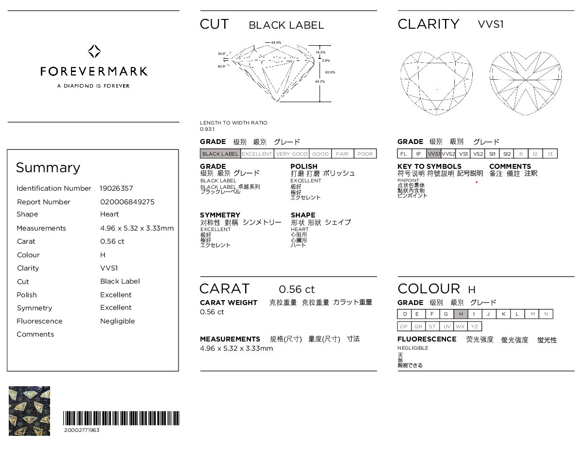 Pendant includes a De Beers Forevermark certificate.