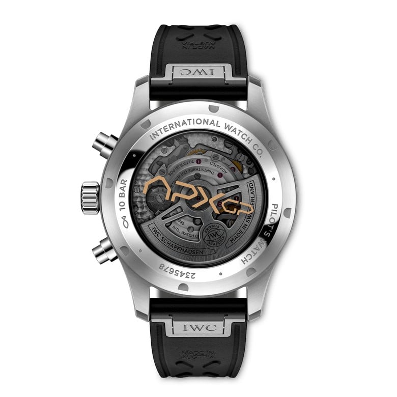 Dedicated to the fictional “APXGP” team from F1® THE MOVIE, the Pilot’s Watch Chronograph APXGP features a design in the team’s colors with black, gold and white elements.