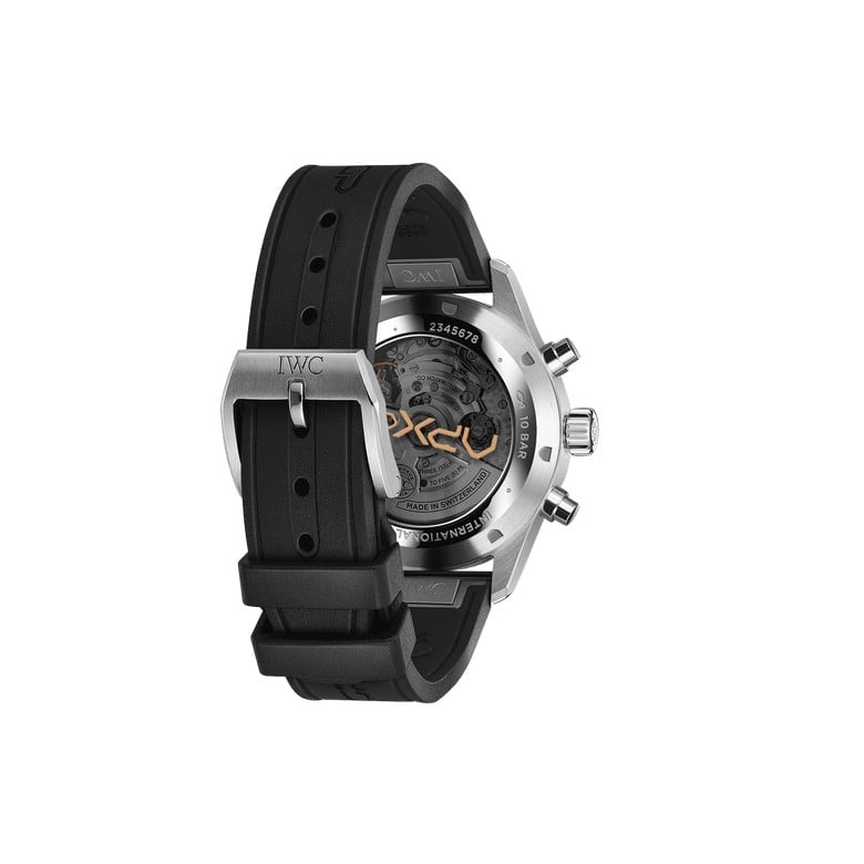 • Functions: Sapphire glass, convex, antireflective coating on both sides, Chronograph function with hours, minutes and seconds, IWC EasX-CHANGE® System, Glass secured against displacement by drop in air pressure, Day and date display, Small hacking seconds