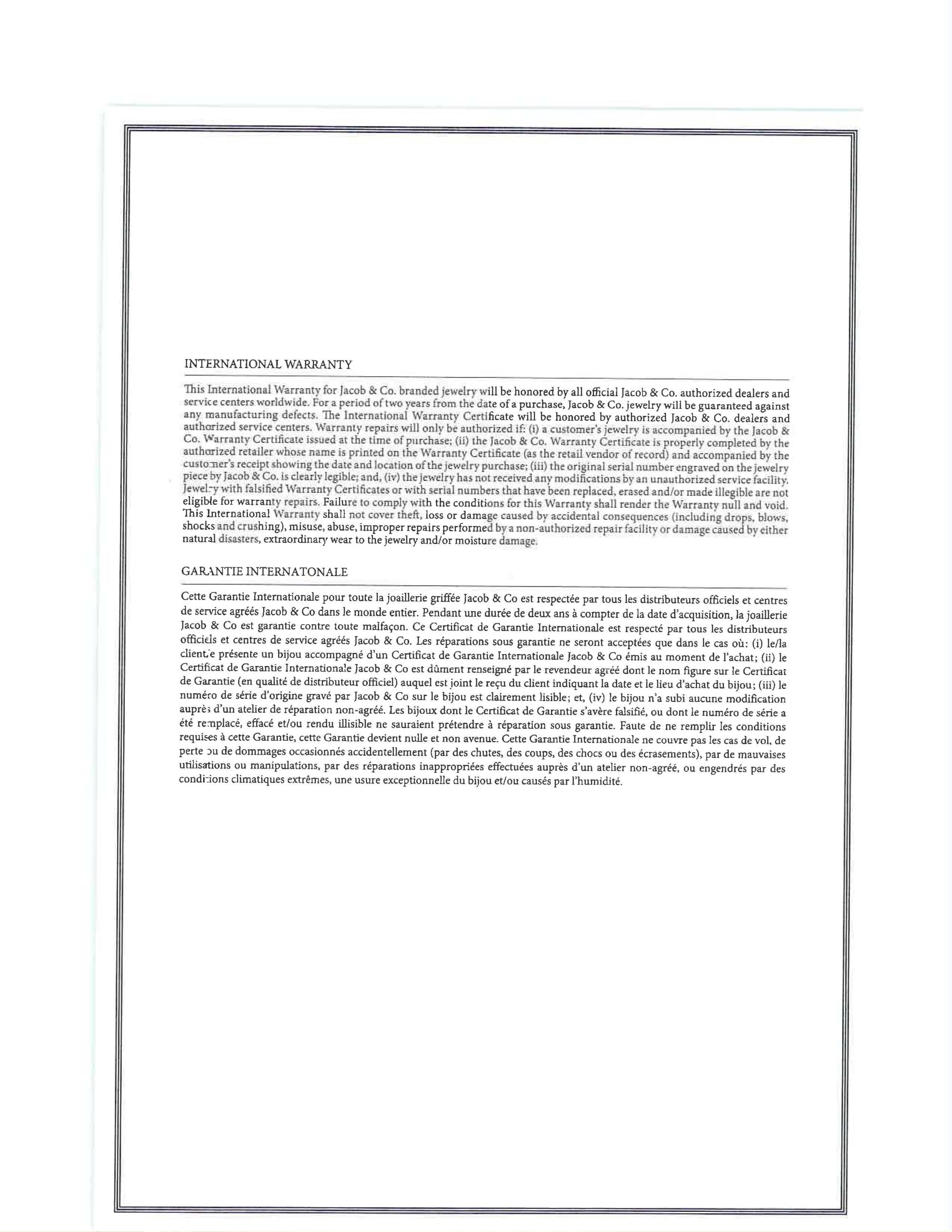 Jewellery items with MSRP $5,000 and up are eligible for Free 30 Days Return or 60 Days Exchange (on equal or greater value) from the delivery date.