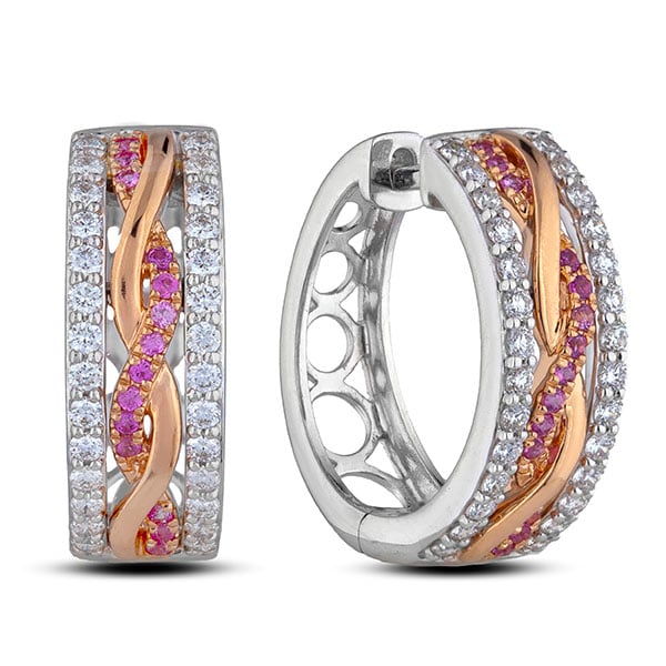 Be the first to review “Pink Sapphire And Diamond Hoop Earrings In 18K White And Rose Gold”