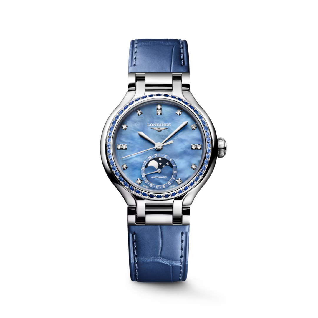 The LONGINES PrimaLuna collection embodies elegance and femininity. Crafted with meticulous attention to detail, its celestial influence is reflected in graceful curves and delicate lines. Whether adorned with diamonds, sapphires, or featuring minimalist dials, each LONGINES PrimaLuna timepiece radiates a beauty that transcends fleeting trends.