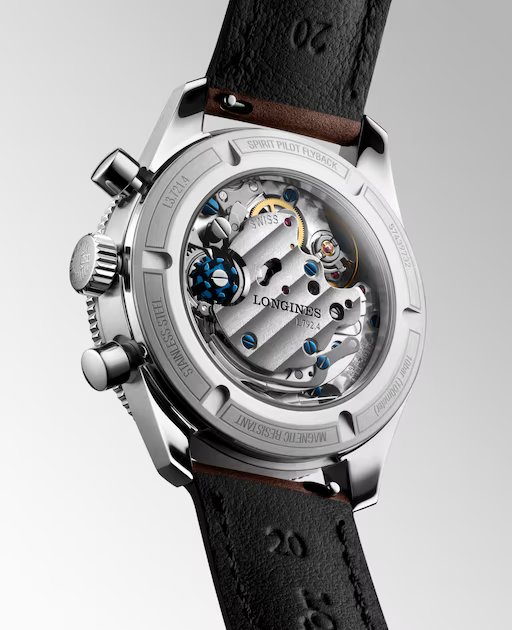 The LONGINES Spirit Pilot Flyback collection captures the brand’s persistent drive for innovation. This chronograph, with its flyback function, highlights LONGINES’ pioneering expertise in this field. The winged hourglass brand introduced its first flyback-equipped model in the early 1930s and secured a patent for the technology on June 16, 1936, marking a world-first achievement. Designed as a groundbreaking tool for pilots, the flyback complication makes it possible to time successive flight stages, greatly enhancing navigational efficiency. The precision of the LONGINES Spirit Pilot Flyback is powered by an exclusive LONGINES calibre, fitted with a silicon balance spring and resistant to magnetic fields. This hand-wound mechanical movement is officially certified as a chronometer by the COSC.