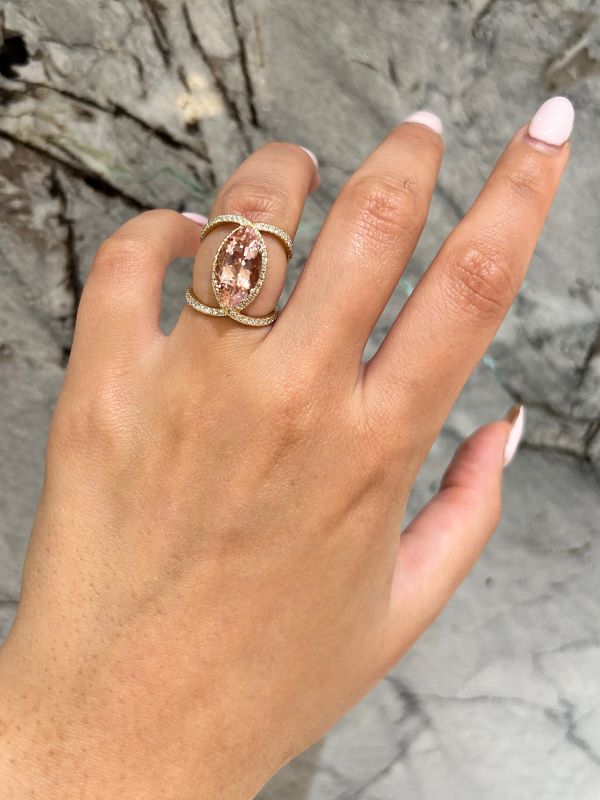 Marquise Cut Morganite and Diamond Statement Ring in 14K Yellow Gold