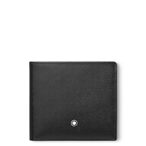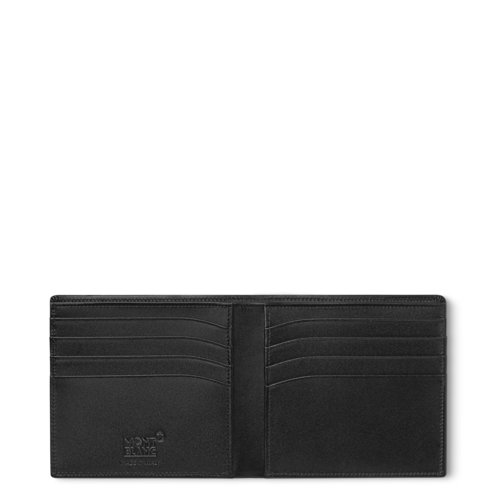Wallet 8 cc, made of black European full-grain cowhide with unique Montblanc deep shine, jacquard lining with Montblanc brand name, Montblanc emblem with palladium-finish ring, with 8 pockets for credit cards, 2 compartments for cash, 2 additional pockets.