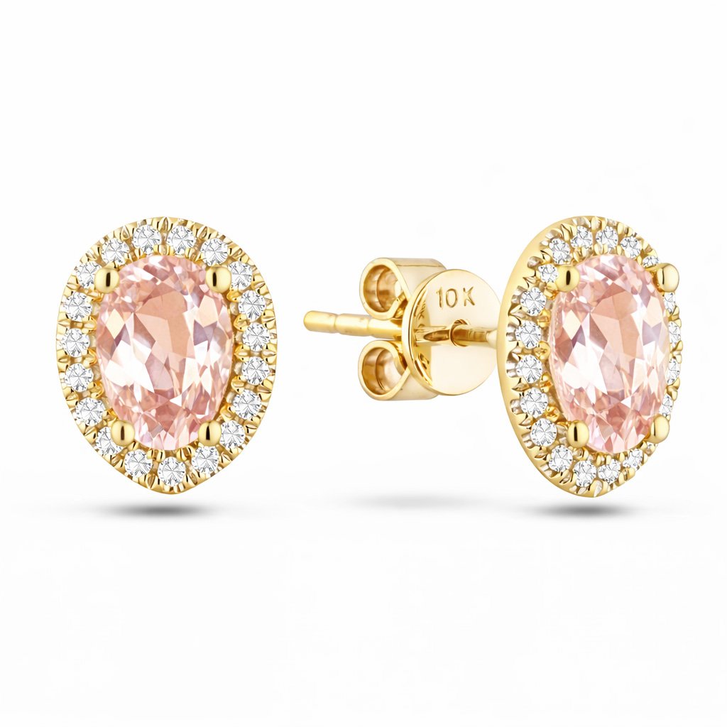 Be the first to review “Morganite 1.44 Carat TW and Canadian Diamond Oval Halo Stud Earrings in Yellow Gold”