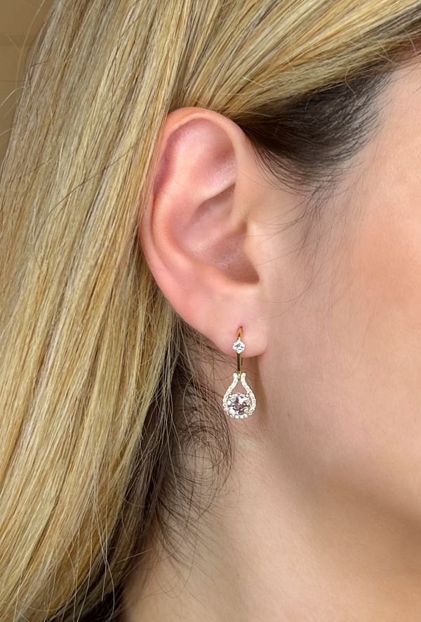 Morganite dangle earrings include Canadian Diamond certificates.