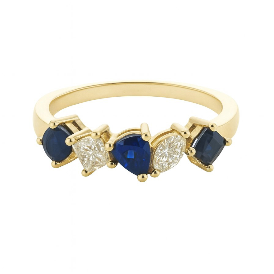 Mosaic Style Ring Featuring Sapphire and Canadian Diamond in Yellow Gold