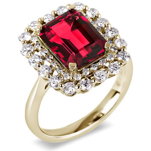 Be the first to review “Non Heated Almandine Garnet and Canadian Diamond Double Halo Cocktail Ring in Yellow Gold”