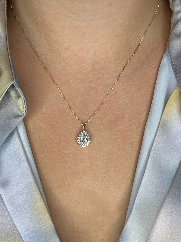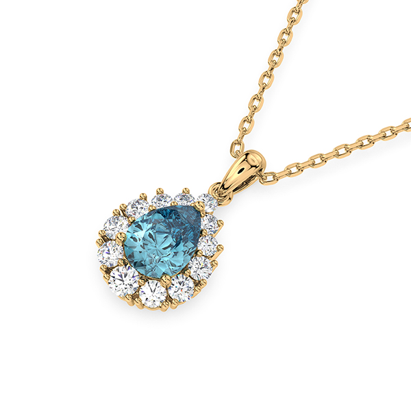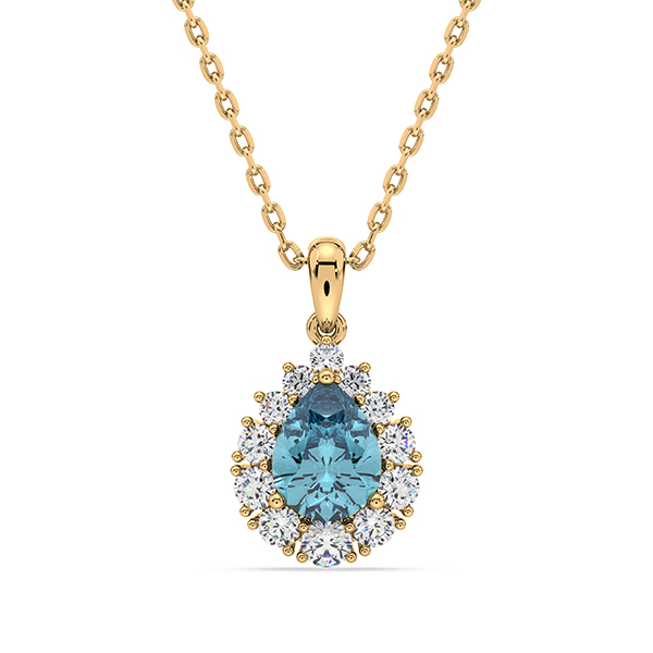 Be the first to review “Non- Heated Aquamarine and De Beers Forevermark Diamond Halo Pendant in 14K Yellow Gold”