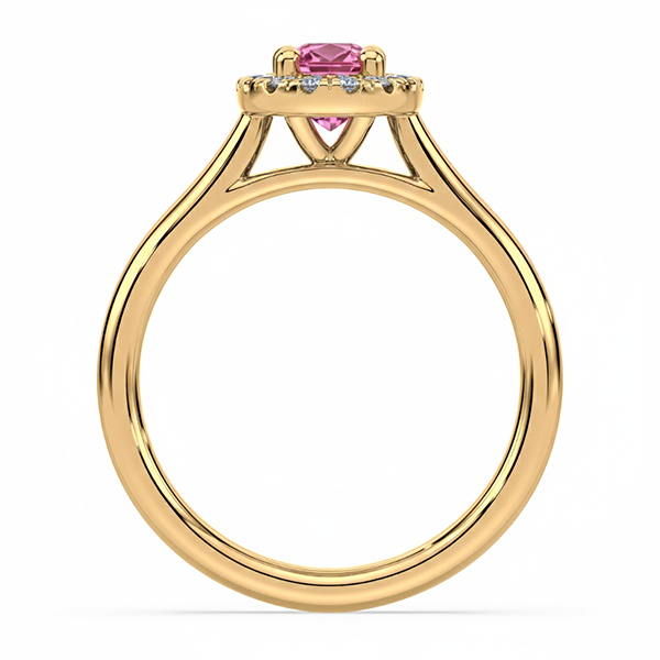 Be the first to review “Non Heated Pink Sapphire & Canadian Diamond Halo Ring in Yellow Gold”