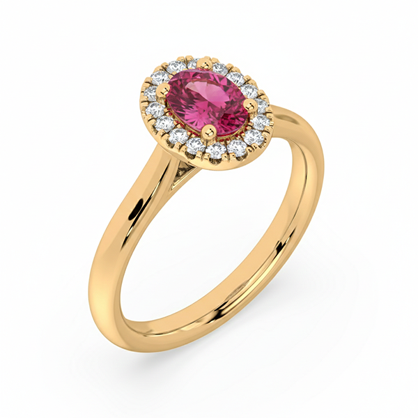 Non Heated Pink Sapphire & Canadian Diamond Halo Ring in Yellow Gold