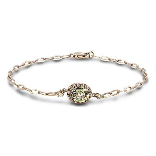 Be the first to review “Non Heated Tanzanian Origin Green Yellow Sapphire and Canadian Diamond Halo Paperclip Chain Bracelet in Yellow Gold”