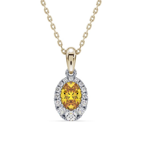 Be the first to review “Non Heated Yellow Sapphire and De Beers Forevermark Diamond Halo Pendant in 14K Gold”