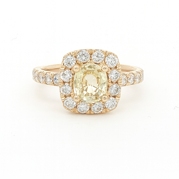 Non Heated Yellow Sapphire & Canadian Diamond Halo Ring in Yellow Gold