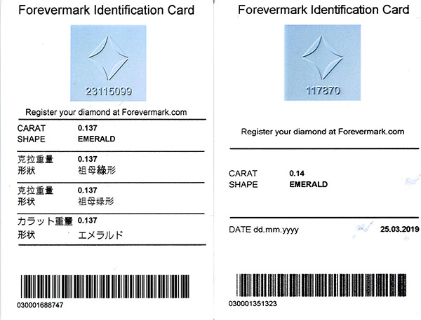 Diamond ring includes a 2x De Beers Forevermark and a Canadian diamond certificate.