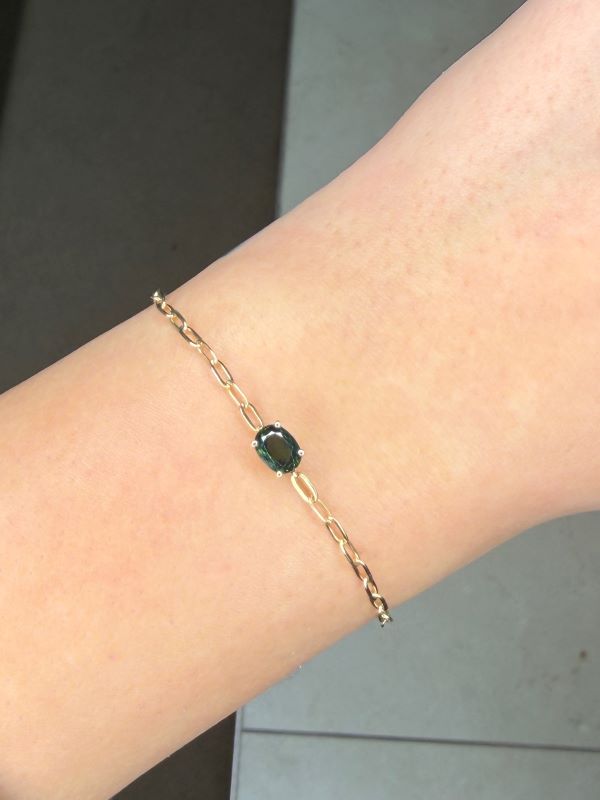 Be the first to review “Oval Green Sapphire Paperclip Bracelet in Yellow Gold”