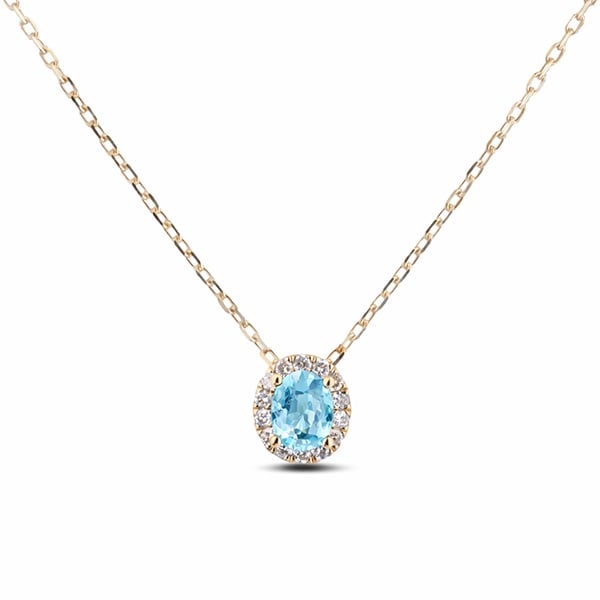 Oval Halo Aquamarine and Canadian Diamond Pendant in Yellow Gold