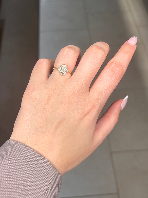 Be the first to review “Oval Shaped De Beers Forevermark Diamond Halo Ring in 18K Yellow Gold” Cancel reply