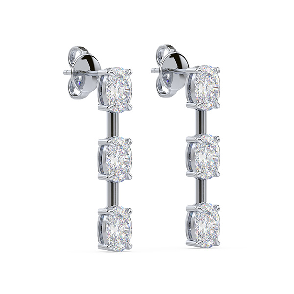 Platinum drop earrings featuring 4.31 carat total weight De Beers Forevermark diamonds.