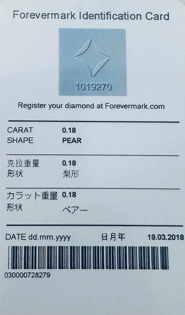 • Certificate: De Beers Forevermark