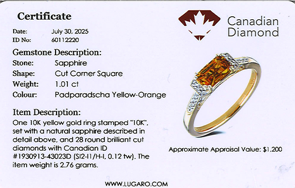 Be the first to review “Padparadscha Color Yellow-Orange Sapphire and Diamond Ring in Yellow Gold”