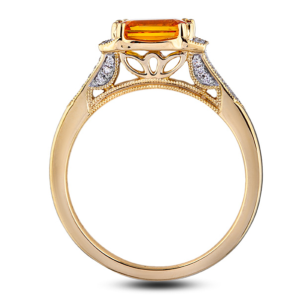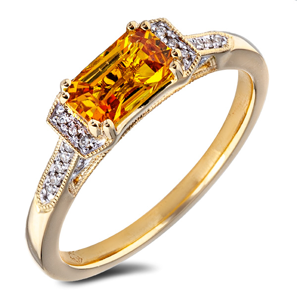 Padparadscha Color Yellow-Orange Sapphire and Diamond Ring in Yellow Gold