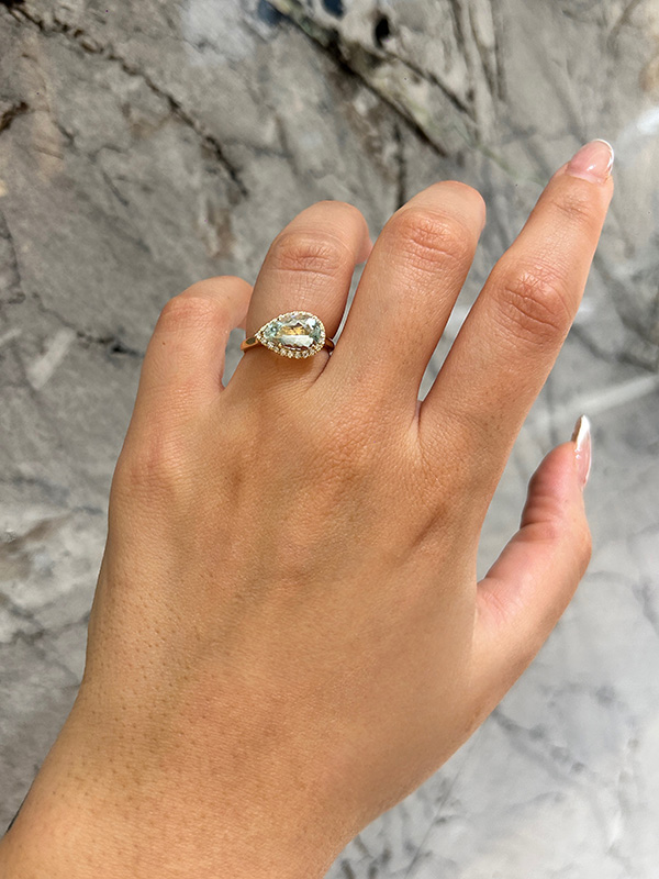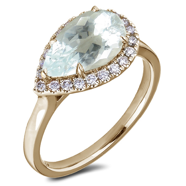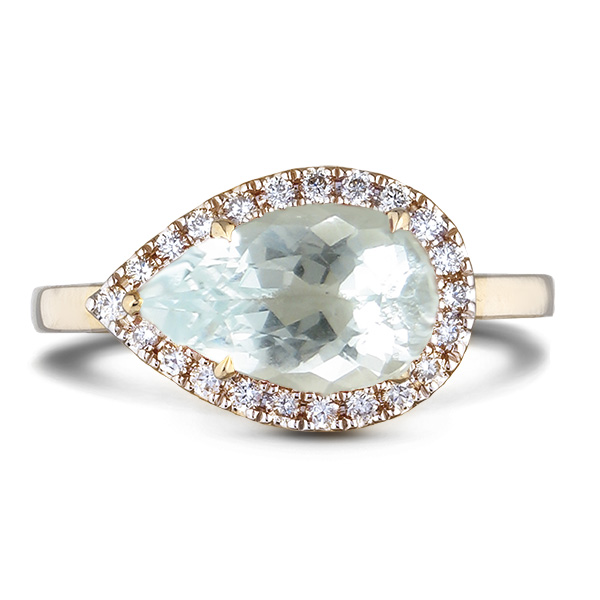 Be the first to review “Pear Aquamarine and Canadian Diamond Halo Ring in Yellow Gold”