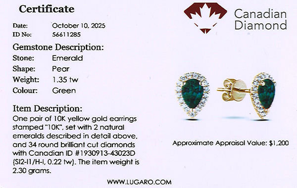 Be the first to review “Pear Shape 1.35 Carat TW Emerald and Canadian Diamond Halo Stud Earrings in Yellow Gold”