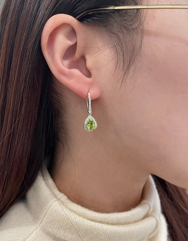 Peridot and Canadian Diamond halo drop earrings also include Canadian diamond certificate.