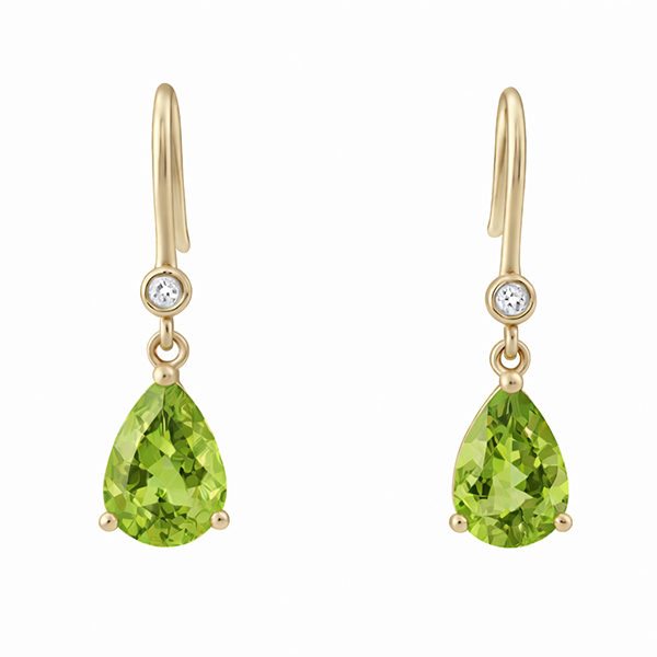 Be the first to review “Pear Shaped Peridot and Diamond Hook Earrings in Yellow Gold”