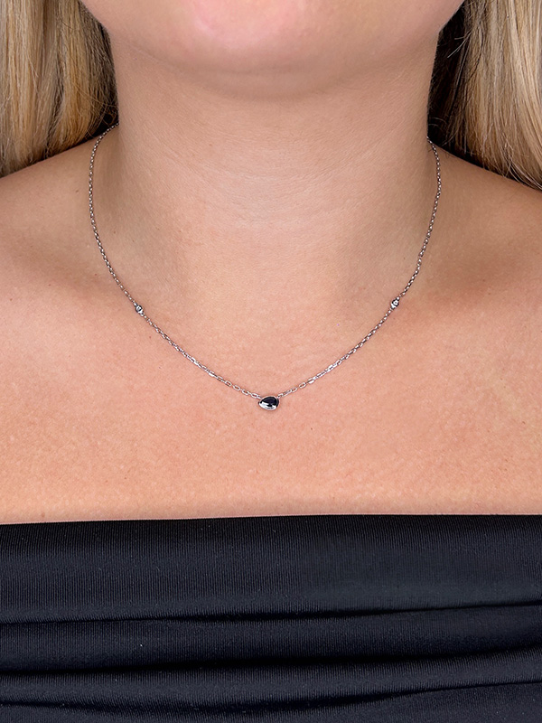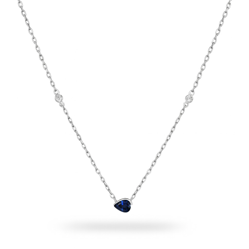 Be the first to review “Pear Shaped Sapphire and Canadian Diamond Necklace in White Gold”