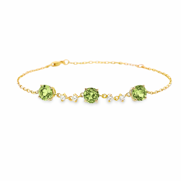 Peridot and Canadian Diamond Dainty Bracelet in Yellow Gold