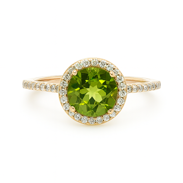 Be the first to review “Peridot and Canadian Diamond Halo Ring in Yellow Gold”