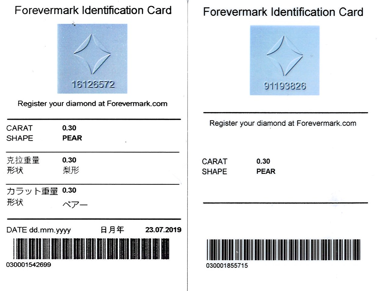 • Certificate: De Beers Forevermark