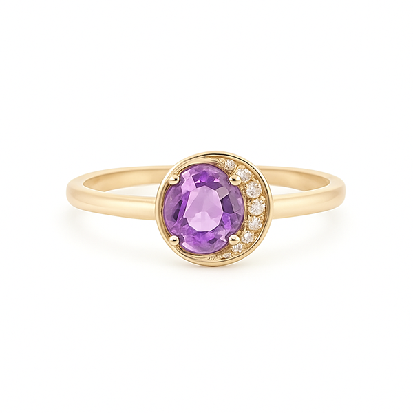 Purple Sapphire and Canadian Diamond Half Halo Ring in Yellow Gold