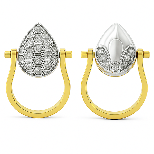 Reversible Honeycomb Diamond Ring In 18K White and Yellow Gold