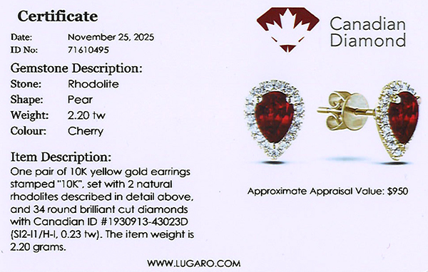 Be the first to review “Rhodolite Garnet And Canadian Diamond Halo Stud Earrings in Yellow Gold”