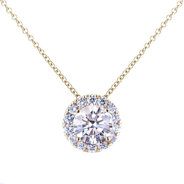 Round Brilliant Cut Canadian Diamond Halo Pendant in Yellow Gold
