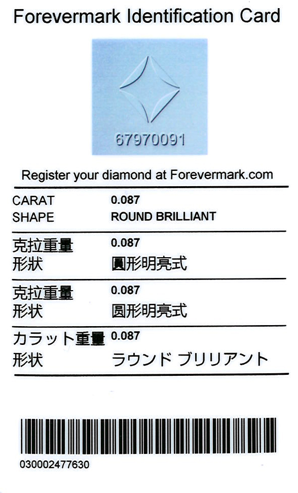 • Certificate: De Beers Forevermark