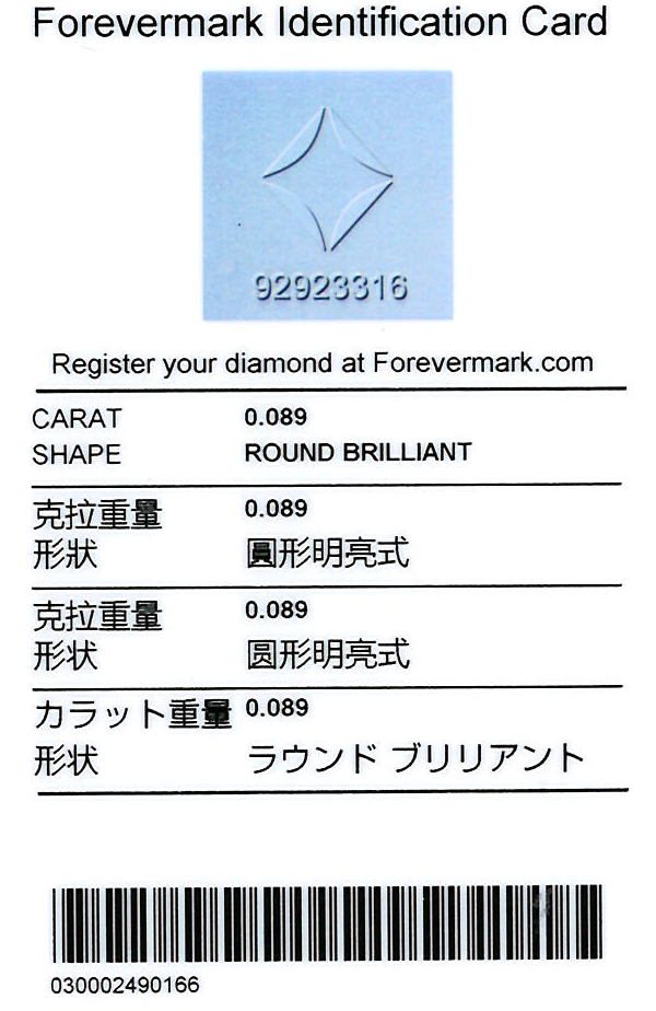 • Certificate: De Beers Forevermark